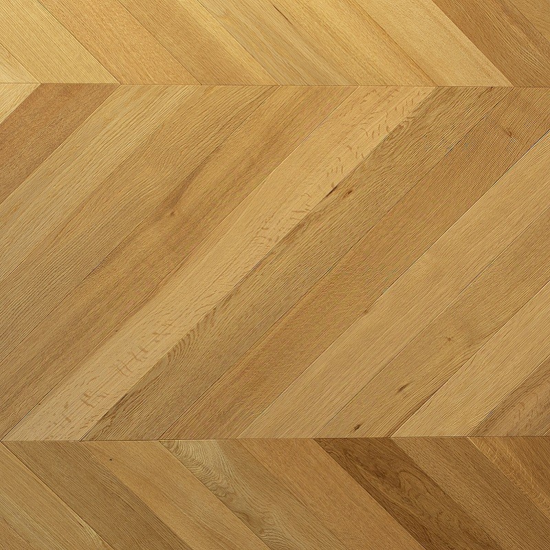Vorgefertigtes Holz 2 Schichten Fischgrät 45° Stärke 10mm Breite 90mm Länge 820mm Edles Holz 3mm, Lackiert Gebürstet geeignet für die Verlegung auf Fußbodenheizung.