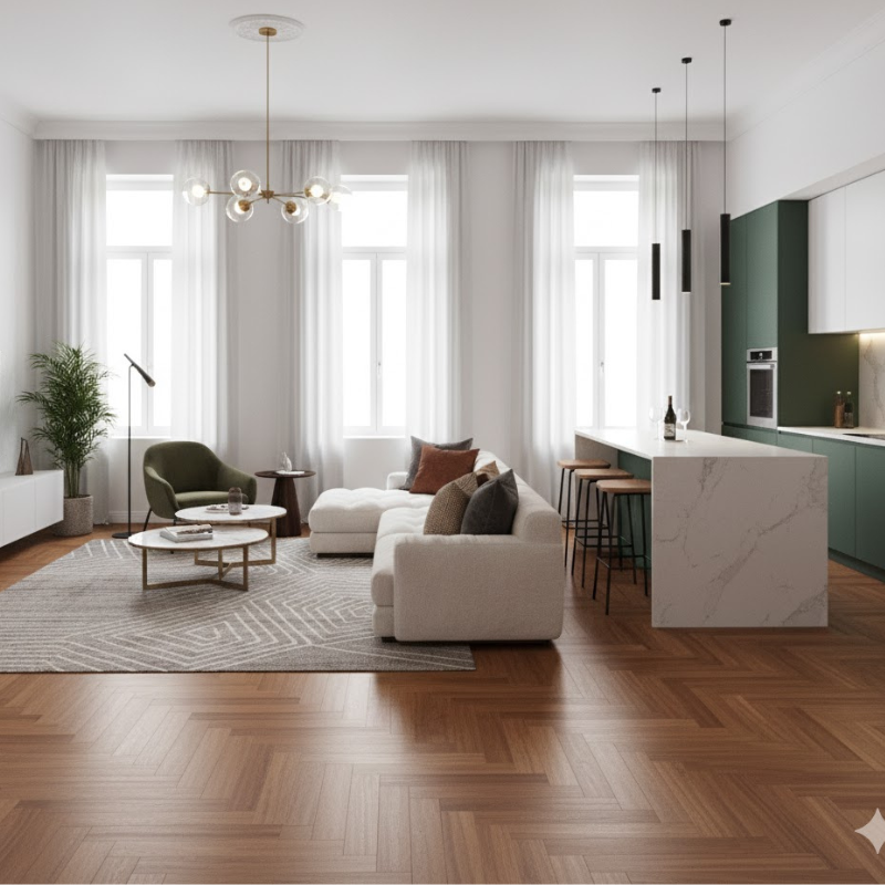 Oberfläche: Die Oberfläche eines Iroko-Bodens kann variieren. Sie kann geölt, lackiert oder naturbelassen sein, je nach ästhetischen Vorlieben und gewünschtem Wartungsniveau.