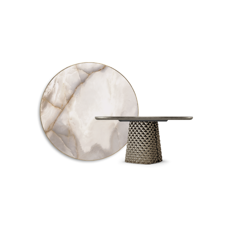 TAVOLO ATRIUM KERAMIK PREMIUM ROUND 160X73,5H BASIS SPIEGELKRISTALL COUTURE BRONZE - PROFIL GEBÜRSTETES GREY