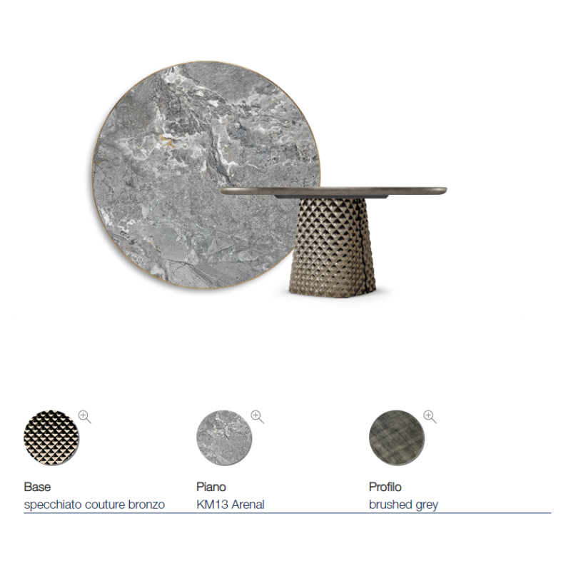 TAVOLO ATRIUM KERAMIK PREMIUM ROUND 160X73,5H BASIS SPIEGELKRISTALL COUTURE BRONZE - PROFIL GEBÜRSTETES GREY